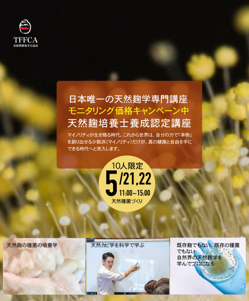 一般会員“麹が遺伝子組み換えである可能性について、冷静に考えれば単一菌であることは明白だと感じました。 一定の温度と湿度が整わなければ失敗することを踏まえると、天然菌の理解がいかに重要かを実感しています。 今後は正しい知識として天然菌について学び、まだ知らない方々にも伝えていきたいと思います。 貴重な講座を本当にありがとうございました。."